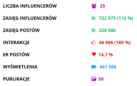Zasięg kampanii: w kampanii udział wzięło 25 influencerow, o łącznym zasięgu na poziomie ponad 700 tyś. obserwujących.