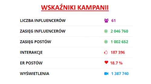 Zasięg kampanii: w kampanii łącznie udział wzięło 61 influencerek, które wygenerowały zasięg na poziomie ponad 2 mln obserwujących.